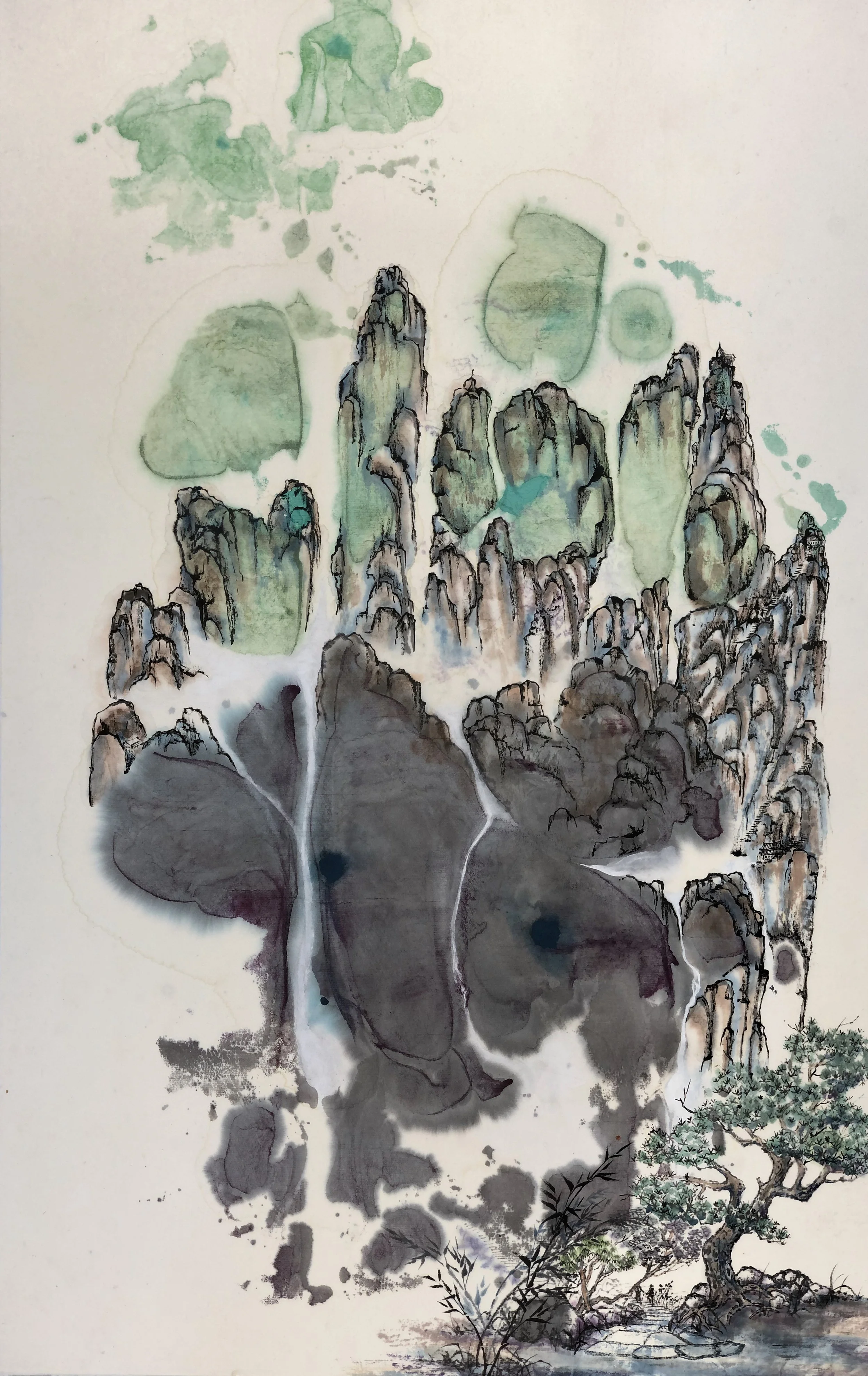 “ …the Chinese concept of perspective, unlike the scientific view of the West, is an idealistic or suprarealistic approach, so that one can depict more than can be seen with the naked eye. The composition is in a ladder of planes….”